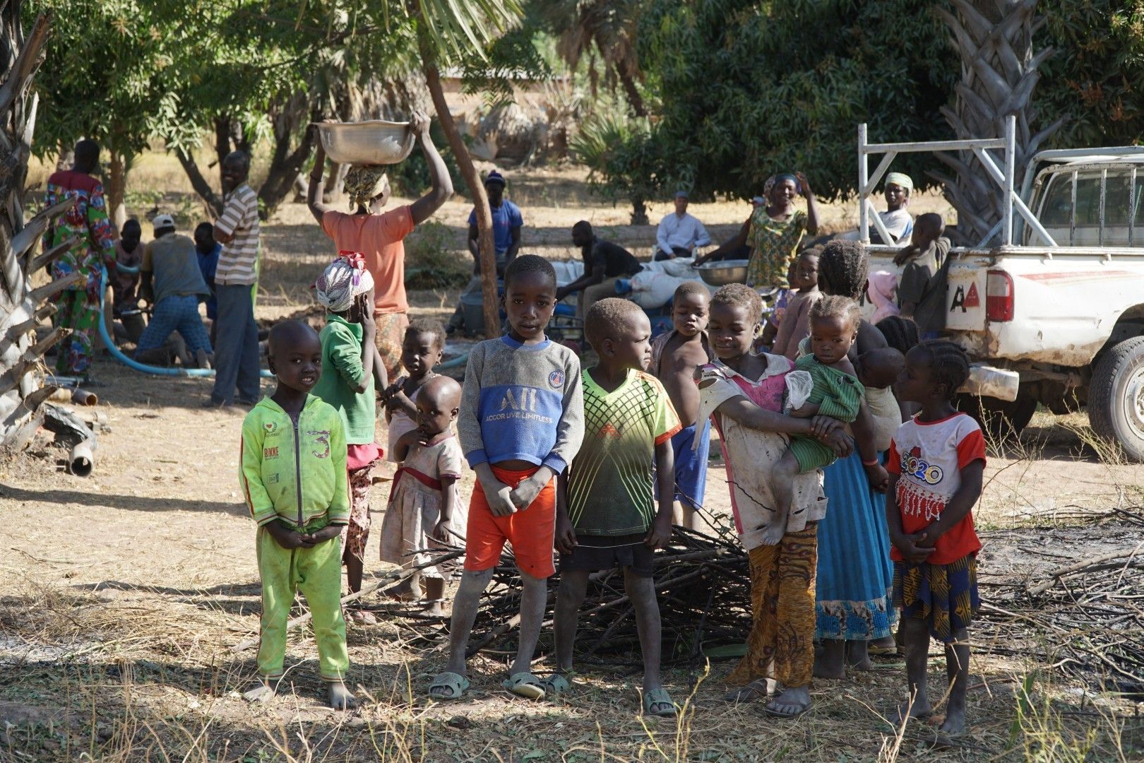 kobiety noszące w misach, na głowach, z najbliższej studni wodę potrzebną, aby rozpocząć odwiert. Druga grupa to robotnicy, którzy byli już w pełnej gotowości do rozpoczęcia pracy. Trzecia i czwarta część tego zbiorowiska była „bezużyteczna” – były to dzieci ze strachem patrzące na kumulację białych przybyszów z innego świata… oraz liczna grupa mężczyzn ogarniająca wzrokiem wszystkie wydarzenia. Zachowanie tej czwartej społeczności może nasz szokować – ale tak po prostu w Czadzie jest. Kobiety i dzieci dźwigają wodę, a mężczyźni