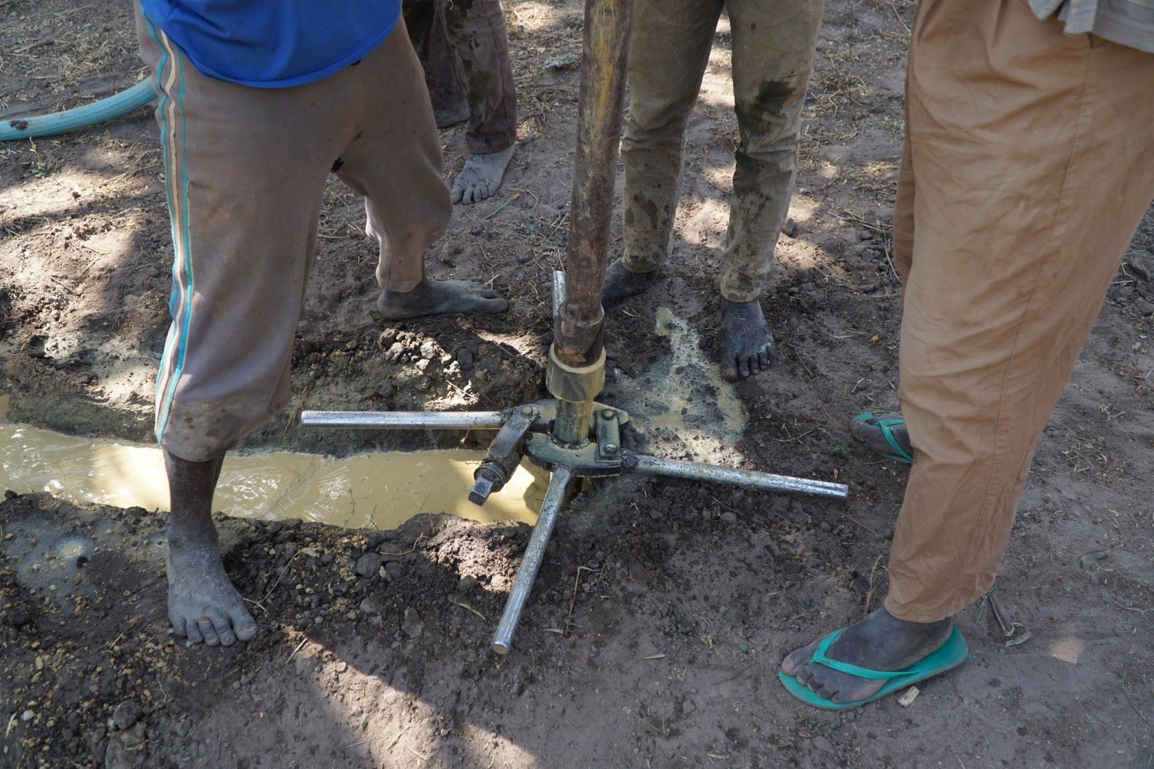 Ale wspomniany wyżej odwiert był „nieudany” – w ciągu jednego dnia robotnicy przewiercili 50 metrów gleby i woda nie wytrysnęła… Kontynuowali pracę kolejnego dnia. W momencie kiedy jedliśmy śniadanie zadzwonił szef firmy budowalnej z radosną wiadomością, że dotarli do wody. Przyznam, że kamień spadł mi z serca, bo już się bałem, że wysiłek robotników pójdzie na marne, że trzeba będzie wiercić jeszcze raz, w innym miejscu.